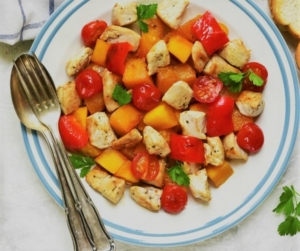 • Pelez et hachez l’ail. Coupez les poivrons en deux, ôtez les pépins puis détaillez les en dés.